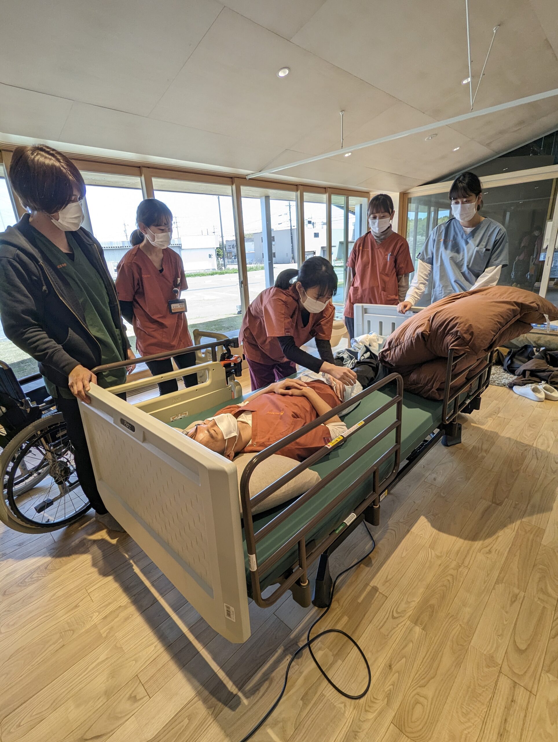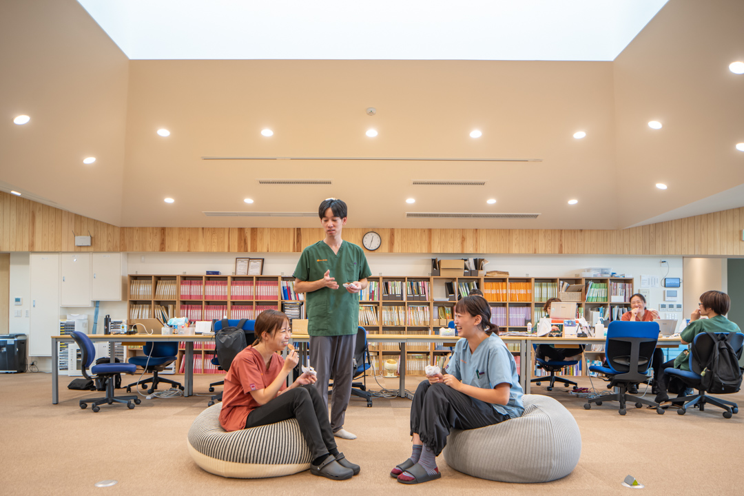 同僚や先輩が近くにいるので、何か困った事があればすぐに相談できます。また、介護職の専門性も尊重される環境であると同時に、医療依存度が高い利用者等の場合は看護師などの医療職も一緒に働いているので、安心です。